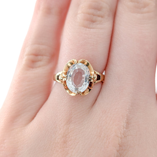 Retro 10K Gold Topaz Ring With A Hint Of Blue
