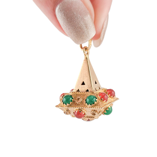Vintage 18K Gold Pendant with Carnelian & Aventurine – Etruscan Revival