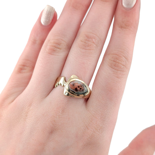 Vintage 14K Gold Agate Ring – Sculptural Statement Ring, Chunky Style