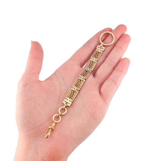 Antique 9K Gold Openwork Link Chain Connector – Gate-Link Style Segment, Dog Clip & Bolt Ring