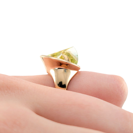 Vintage Strell 14K Gold Lighthouse Lens Ring – Faceted Uranium Glass / Synthetic Spinel, Modernist Design