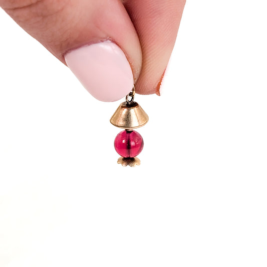 Vintage 10K Gold Lamp Charm with Ruby-Red Glass