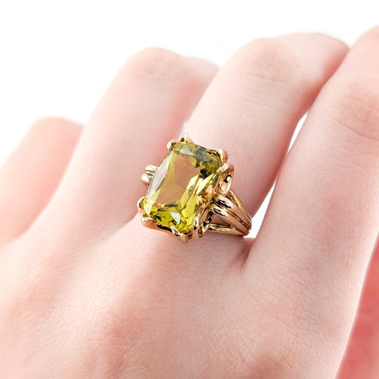 14k Gold Lemon Quartz Ring – Faceted Cushion Cut Gemstone