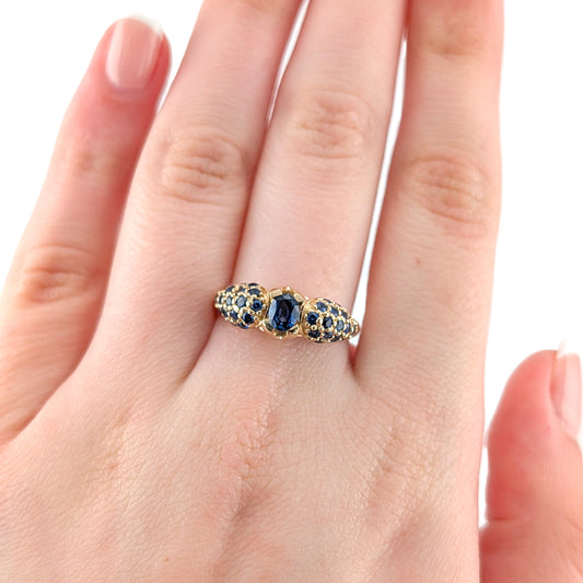 Vintage 14K Gold Thai Princess Sapphire Ring - Floral Cluster Dome Cocktail Ring