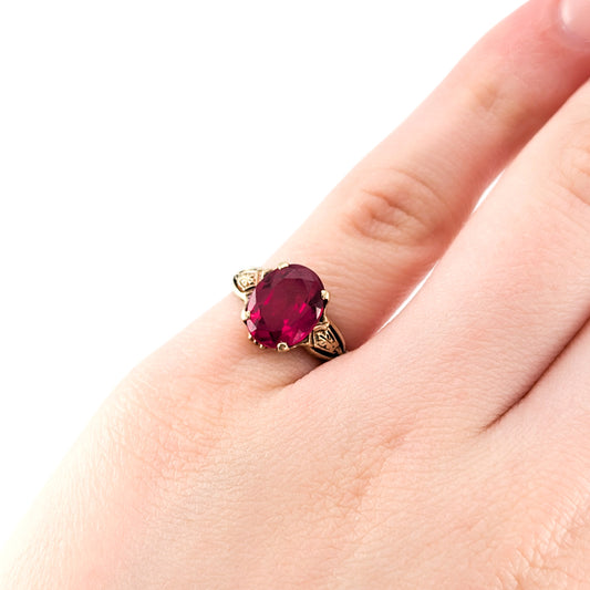 Vintage 10K Gold Oval Synthetic Ruby Ring