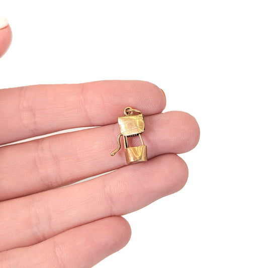 Vintage 9K Gold Wishing Well Mechanical Charm