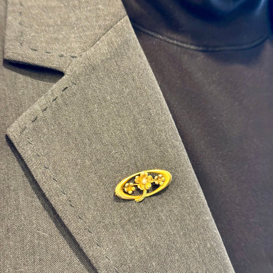 Antique Art Nouveau 10K Gold & Seed Pearl Floral Brooch