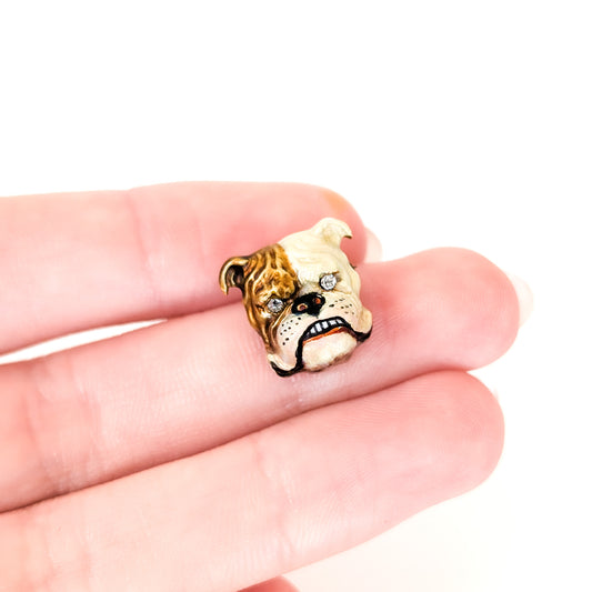 Vintage 14k Enamel Bulldog Head Pin with Diamond Eyes