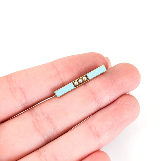Antique 14K Gold Enamel and Seed Pearl Bar Pin