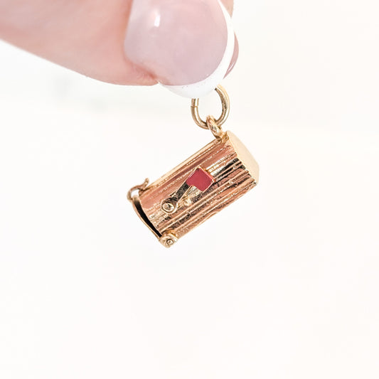 Vintage 14K Gold Mailbox Mechanical Charm with Movable Flag