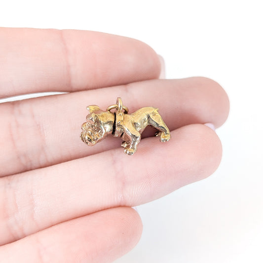 Vintage 14K Gold Bulldog Mechanical Charm with Moving Head