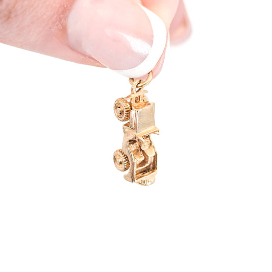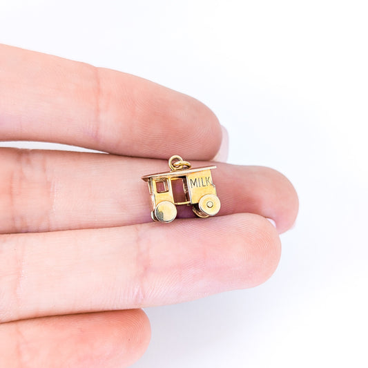 Vintage 14K Gold Milk Cart Charm with Mechanical Wheels