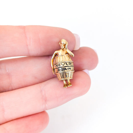 Vintage 14K Gold Never Again Barrel Mechanical Charm – Hidden Dice Inside