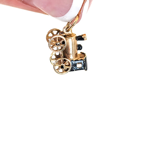 Vintage 14K Gold Steam Engine Train Charm with Moving Wheels