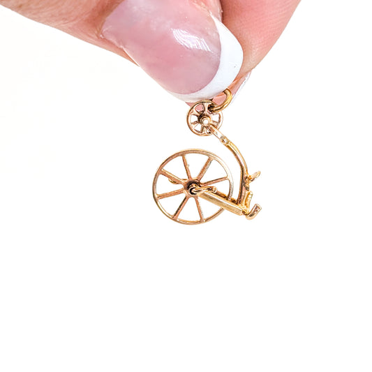 Vintage 14K Gold Penny Farthing Bicycle Charm with Moving Wheels