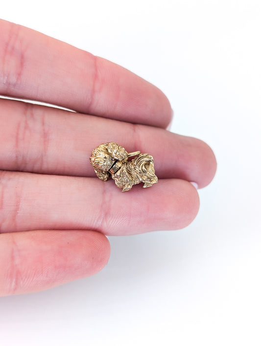 Vintage 14K Gold Pekingese Dog Mechanical Charm with Moving Head