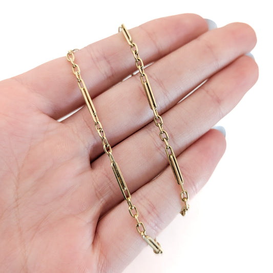 Antique 1920s Art Deco 14K Yellow Gold Bar Link Watch Fob Chain – 13 Inches