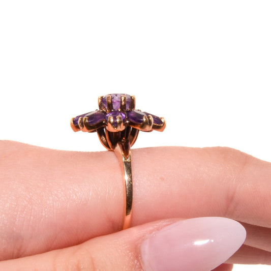 14K Amethyst Cluster Ring – Vintage Floral Design – 7.05g Solid Gold Statement Jewelry