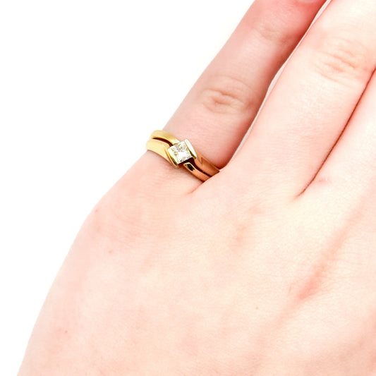 Vintage 14K Sculptural Bypass Puzzle Ring with 0.40ct SI1 Diamond – Princess-Cut Ring – 4.08g Solid Gold
