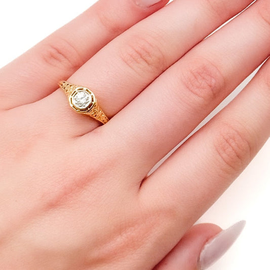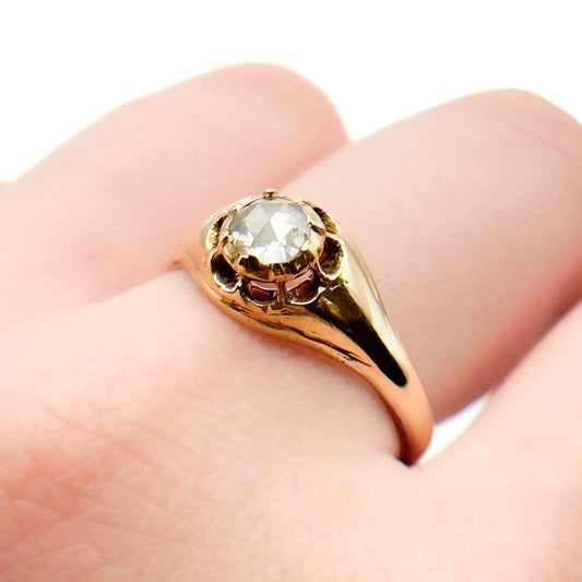 15K Gold Antique Rose Cut Diamond Solitaire Ring