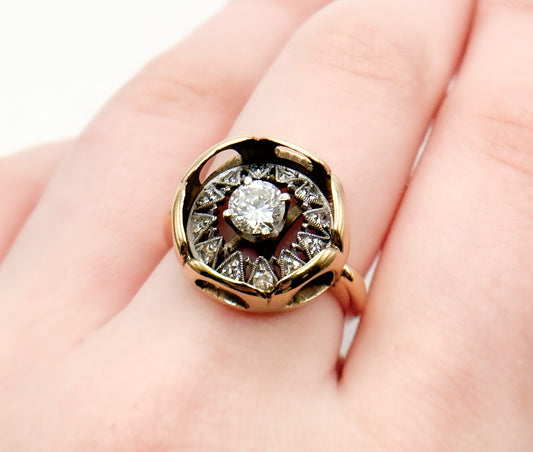 Art Deco Conversion Diamond Ring in 14K Gold – Antique 1920s Diamond Halo – 7.72g