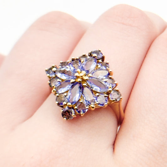 Vintage 14K Gold Tanzanite Cluster Ring – 1.75ctw Marquise & Oval Tanzanite – 4.04g