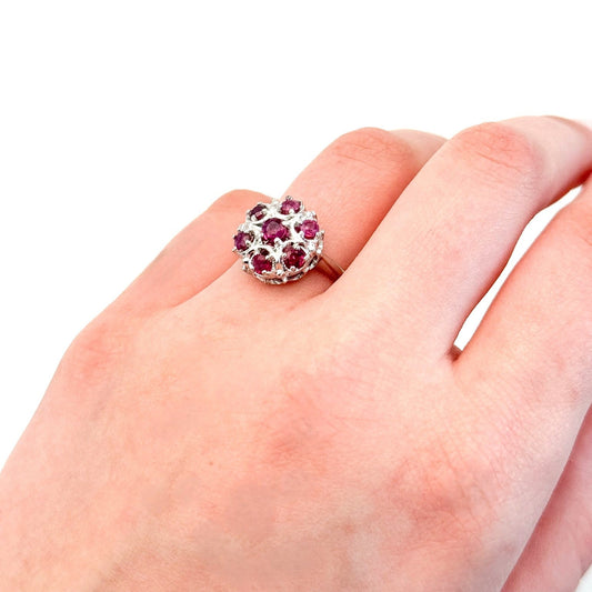 Vintage 14K White Gold Ruby Cluster Ring – Dome Floral Design – 4.83g Solid Gold