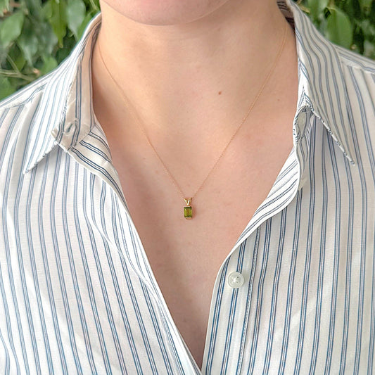 14K Gold Emerald-Cut Peridot Pendant Necklace and 18" Gold Chain