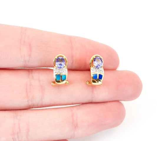 Vintage 18K Gold Tanzanite Diamond & Opal earrings