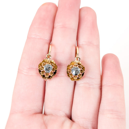 Antique Italian Crafted 18K Gold Earrings with Rose Cut Diamonds