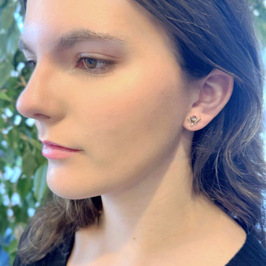 Vintage Enamel Orchid Stud Earrings in 14k Gold