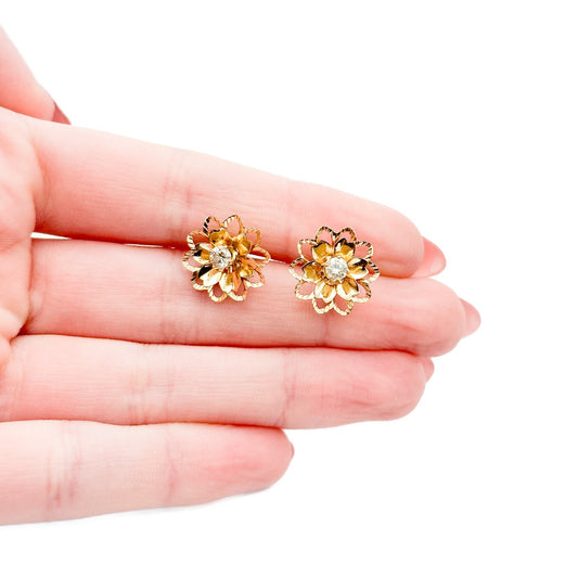 Vintage 14K Gold Diamond Flower Jackets & Studs – Two-in-One Earrings