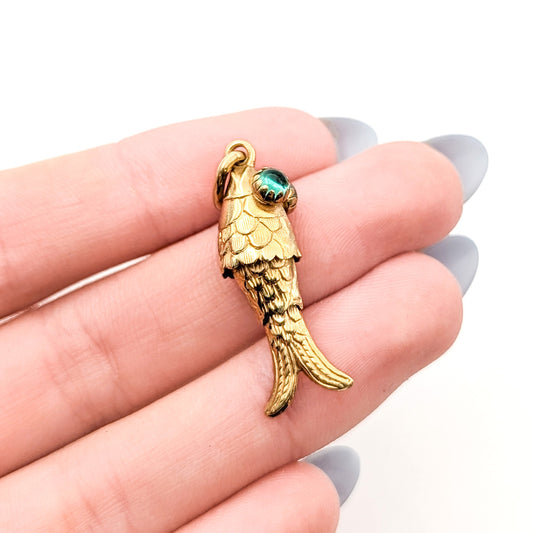Vintage 10K Gold Mechanical Fish Charm with Glass Eyes – Articulated Design