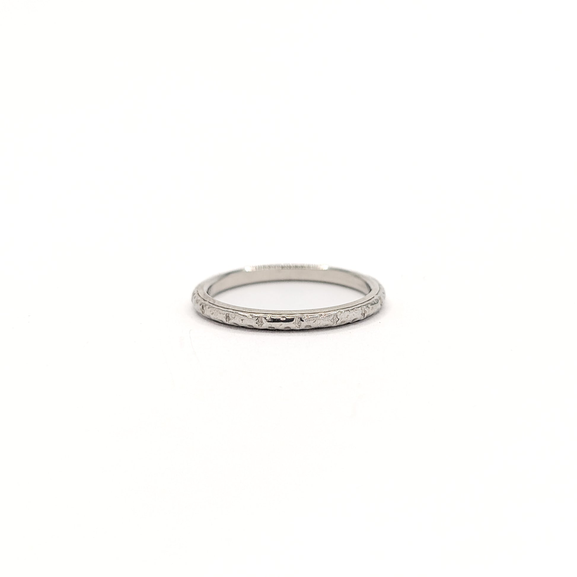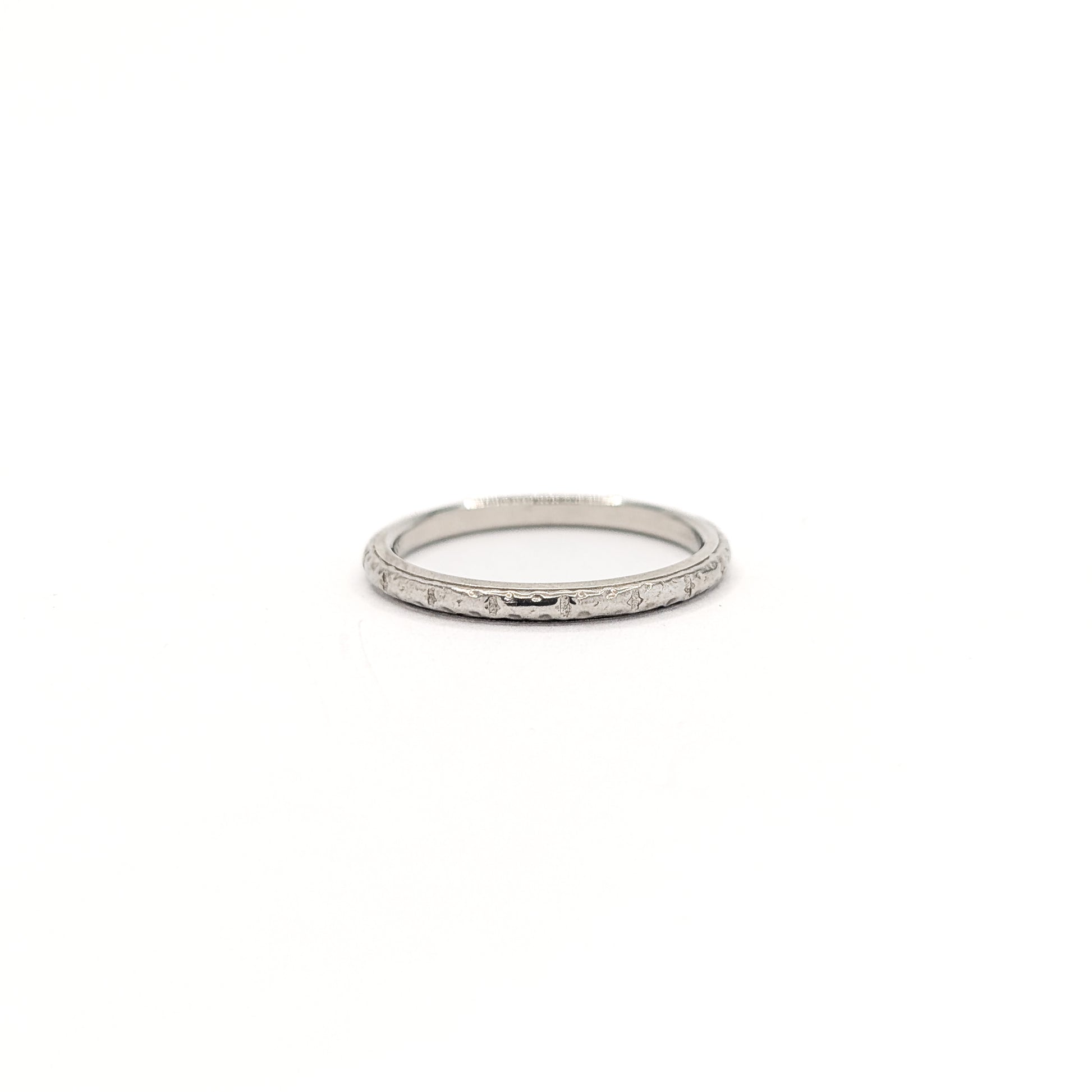 Antique Belais 18K White Gold Engraved Band - Art Deco Excellence