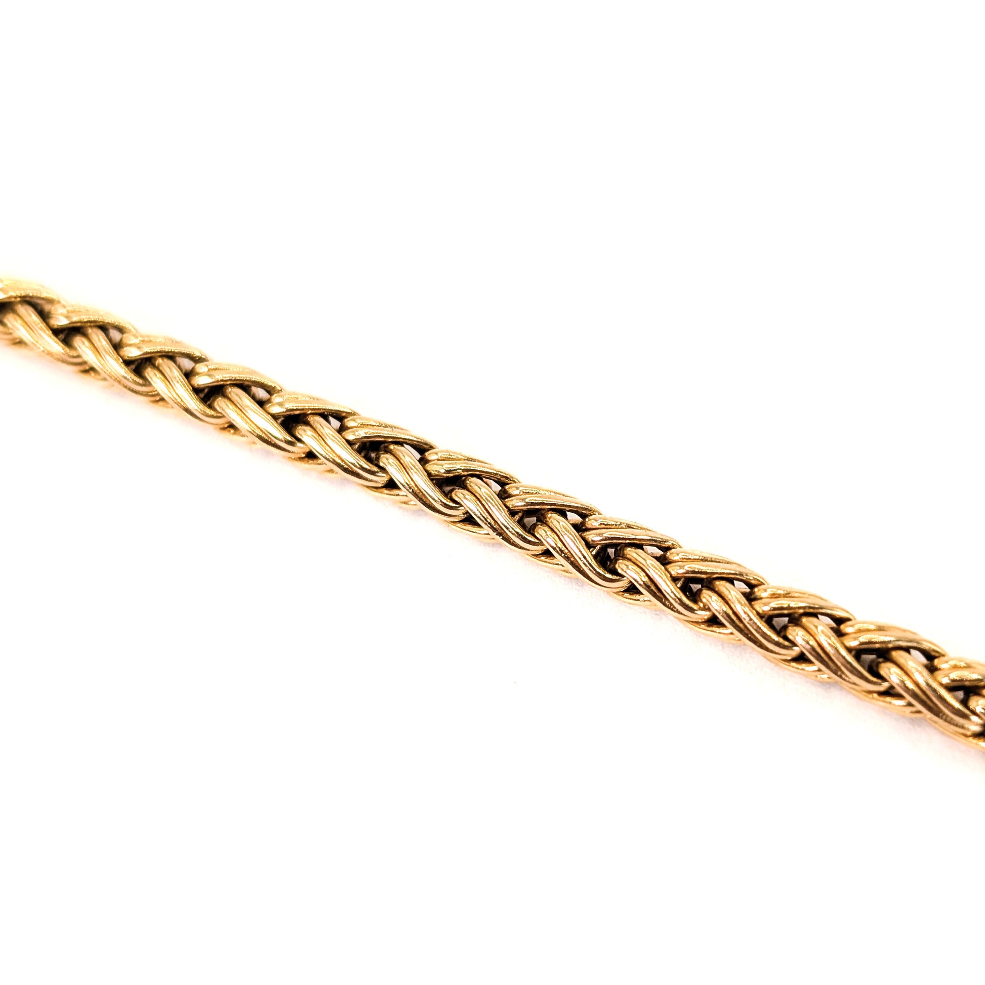 A perfect staple for any jewelry wardrobe. Wear it alone for minimal elegance or stack it with bangles and charm bracelets for a layered gold look. The wheat weave is beloved for its strength, comfort, and shimmering movement.
