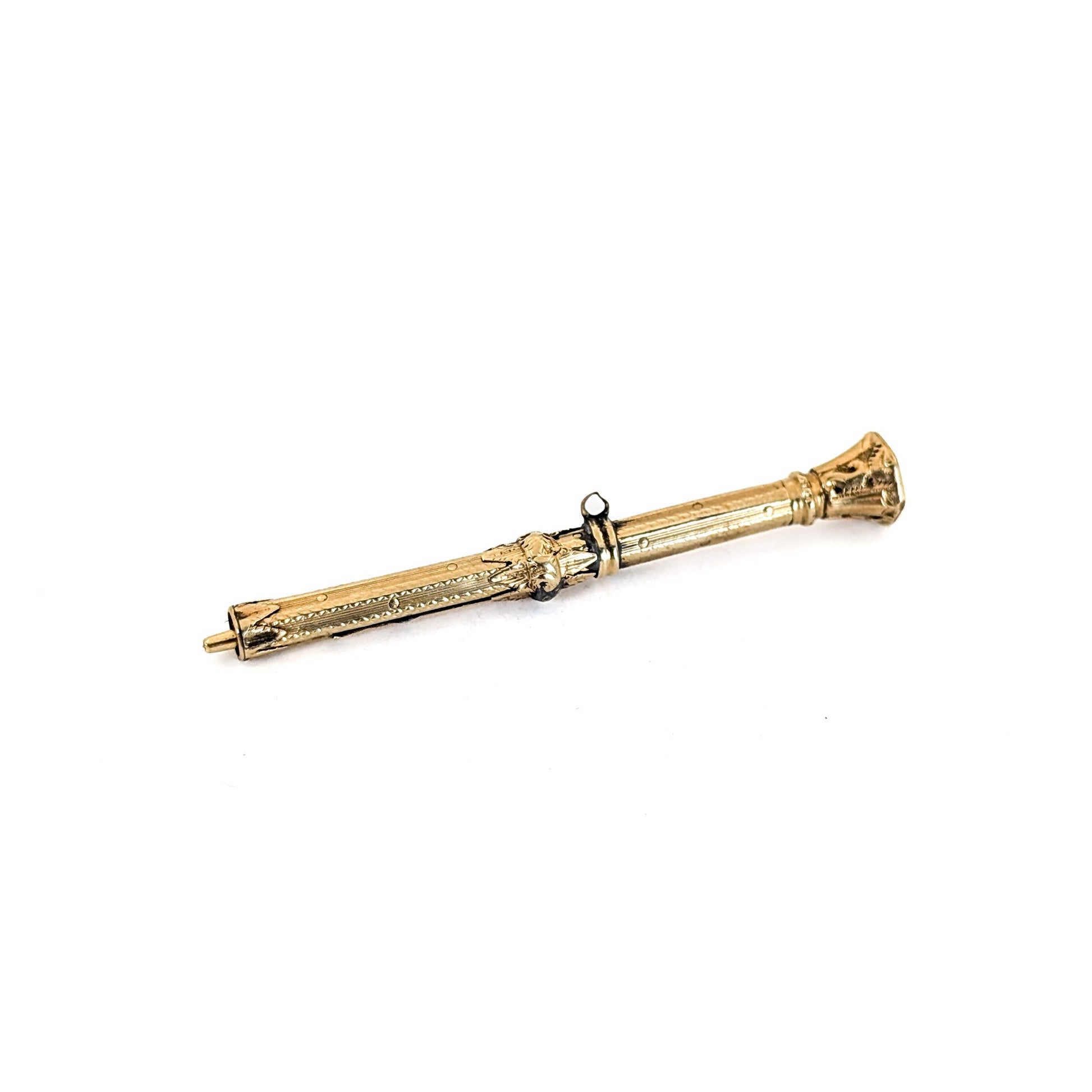 Compact yet functional, this retractable pencil was likely designed for a lady’s chatelaine or a gentleman’s vest pocket. The body extends smoothly to reveal a fine writing tip, and a small loop allows it to be worn as a pendant or attached to a chain or chatelaine.