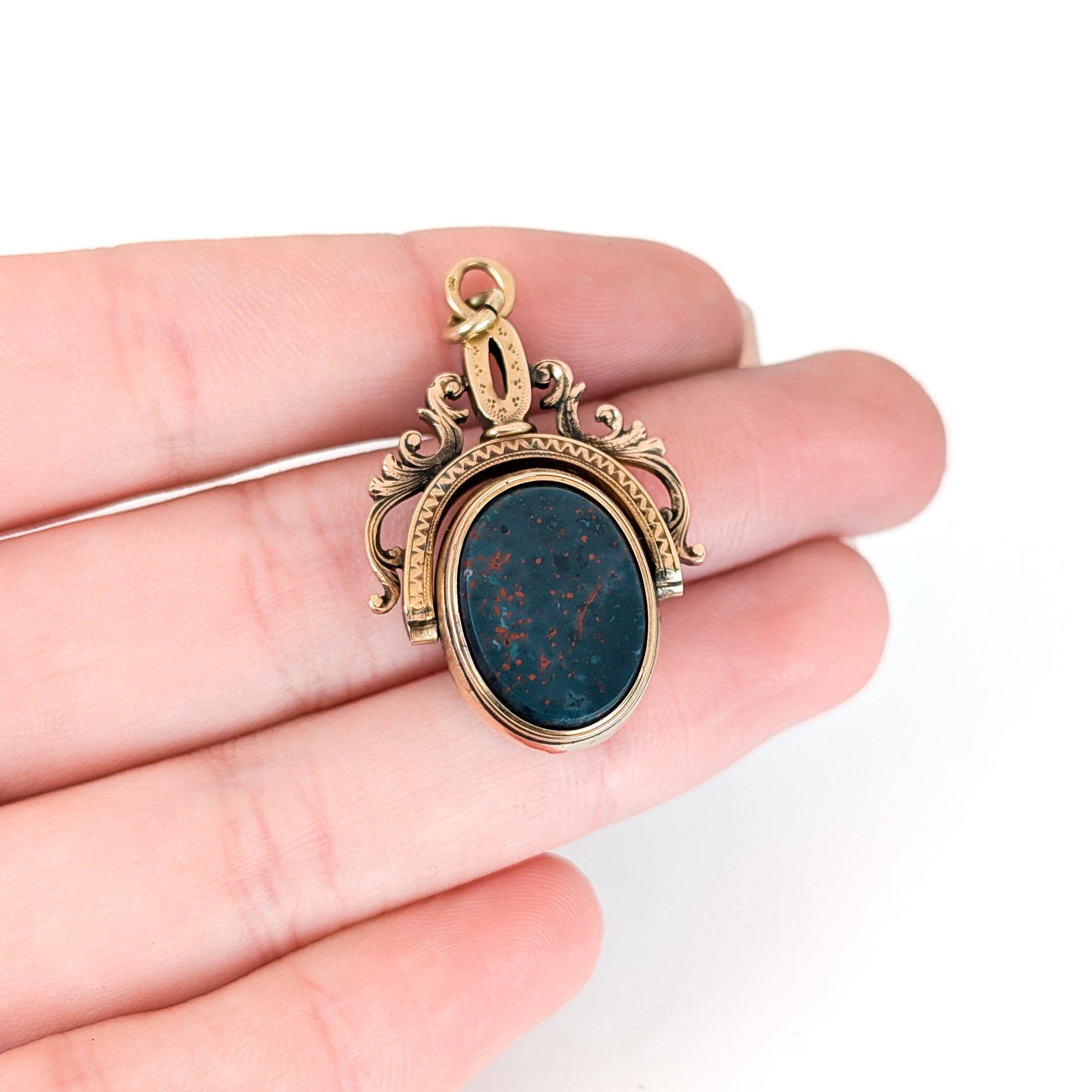 Victorian 15K Gold Swivel Pendant Fob with Bloodstone and Roman Hematite Intaglio