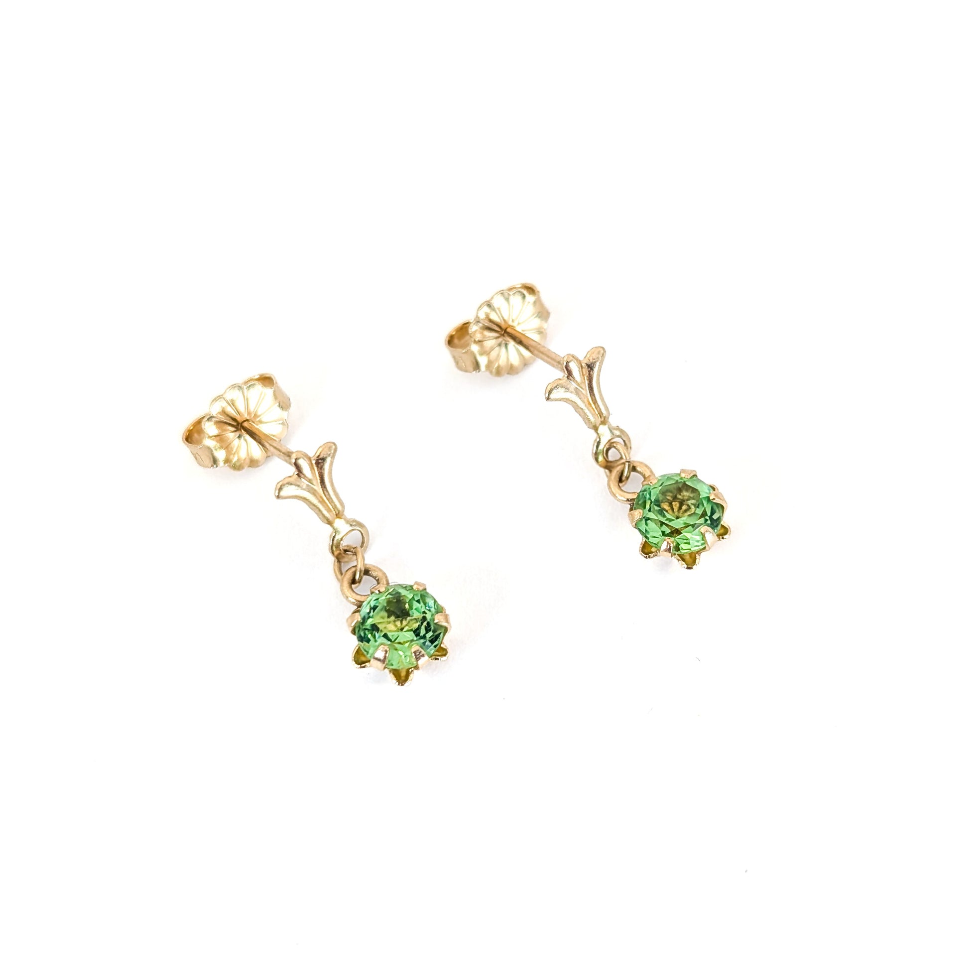 Vintage 14K Gold Uranium Glass Drop Earrings