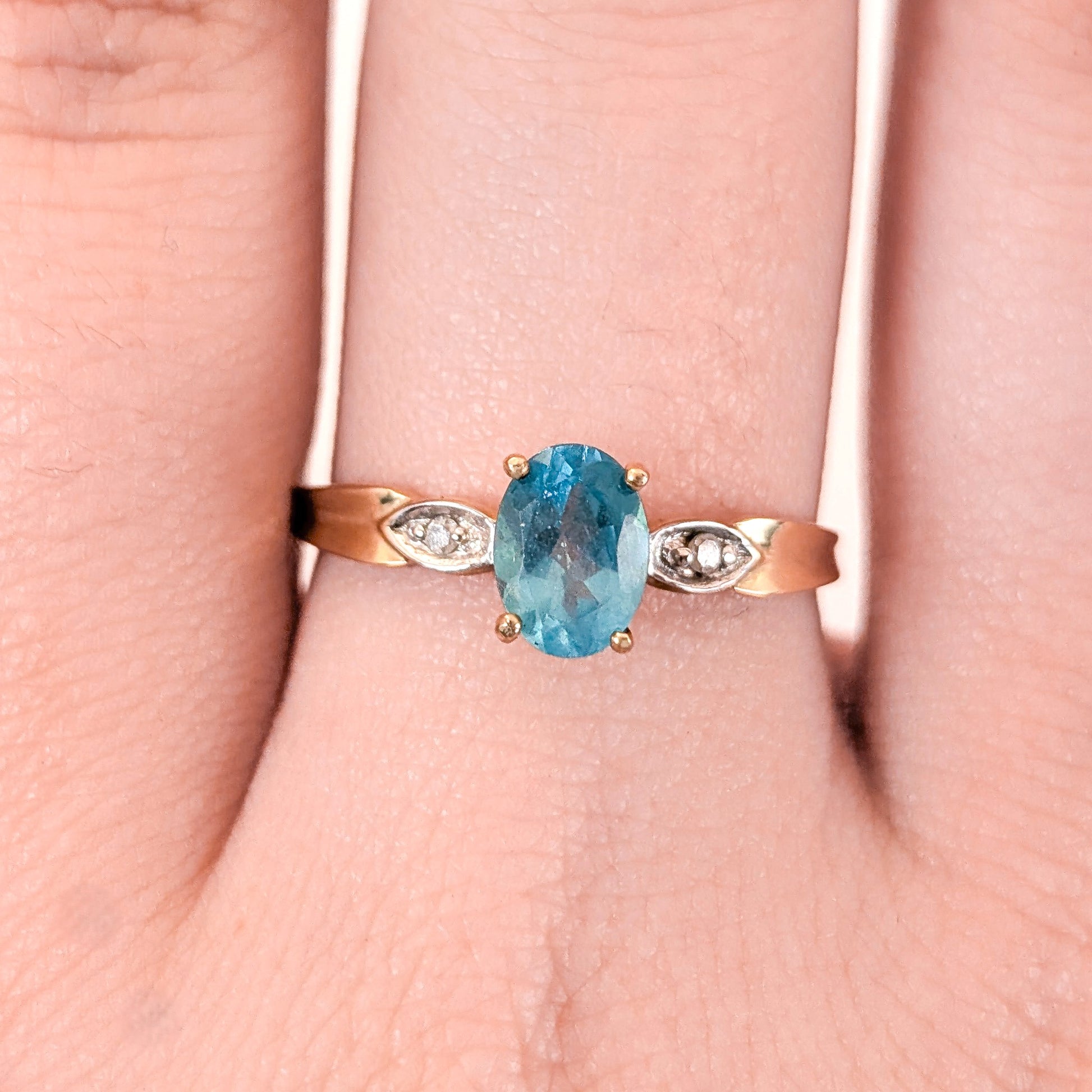 Vintage 10K Yellow Gold Apatite Ring with Diamond Accents