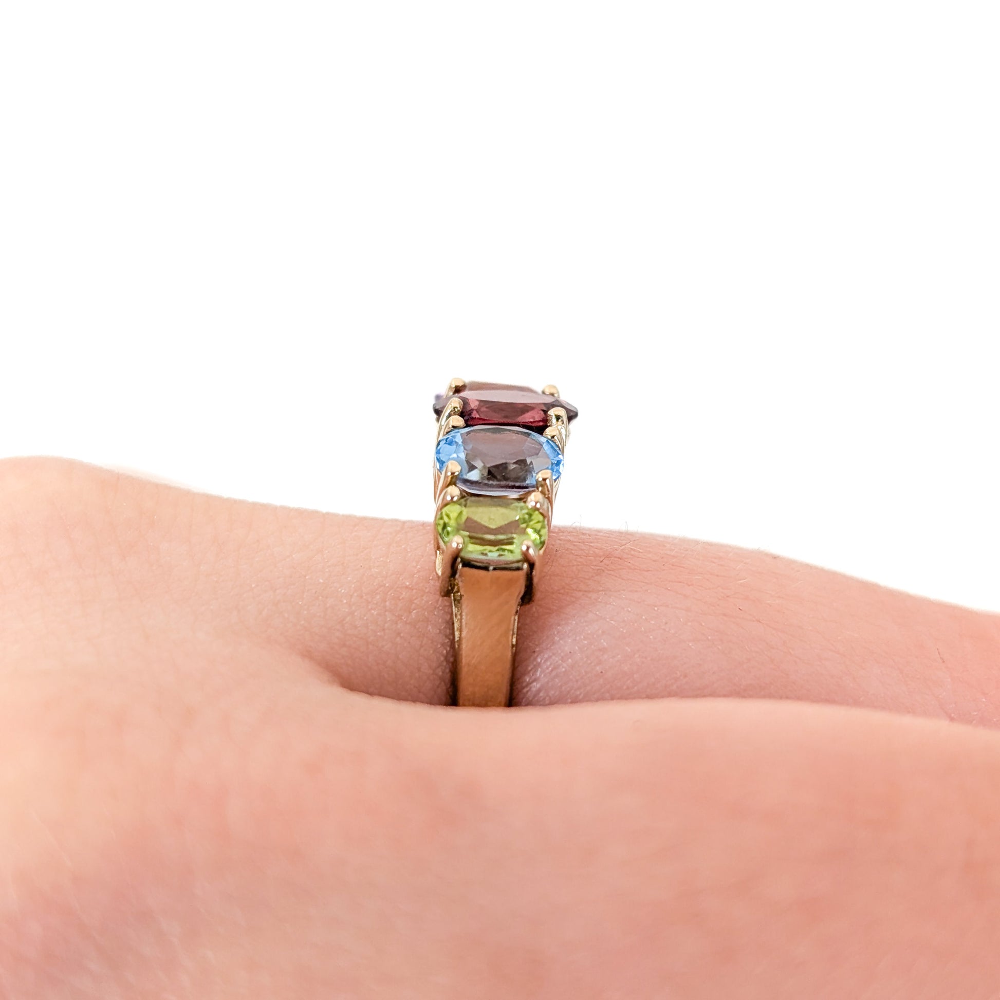 Vintage 10K Yellow Gold Peridot, Topaz, Garnet, Amethyst, and Citrine Ring - A Mid-Century Rainbow Masterpiece