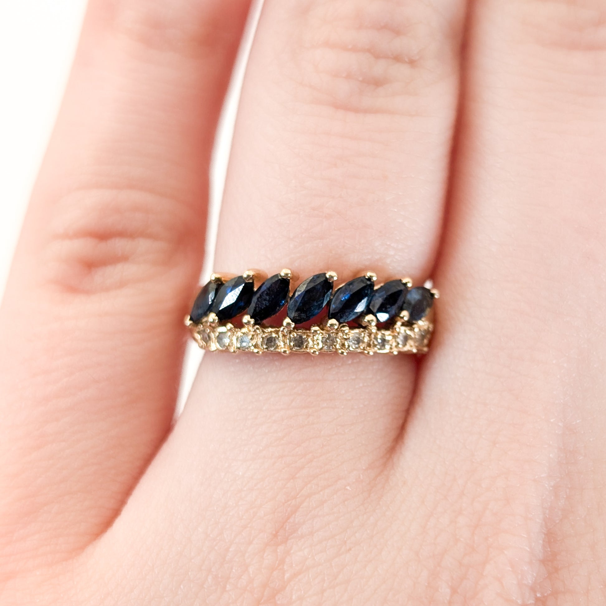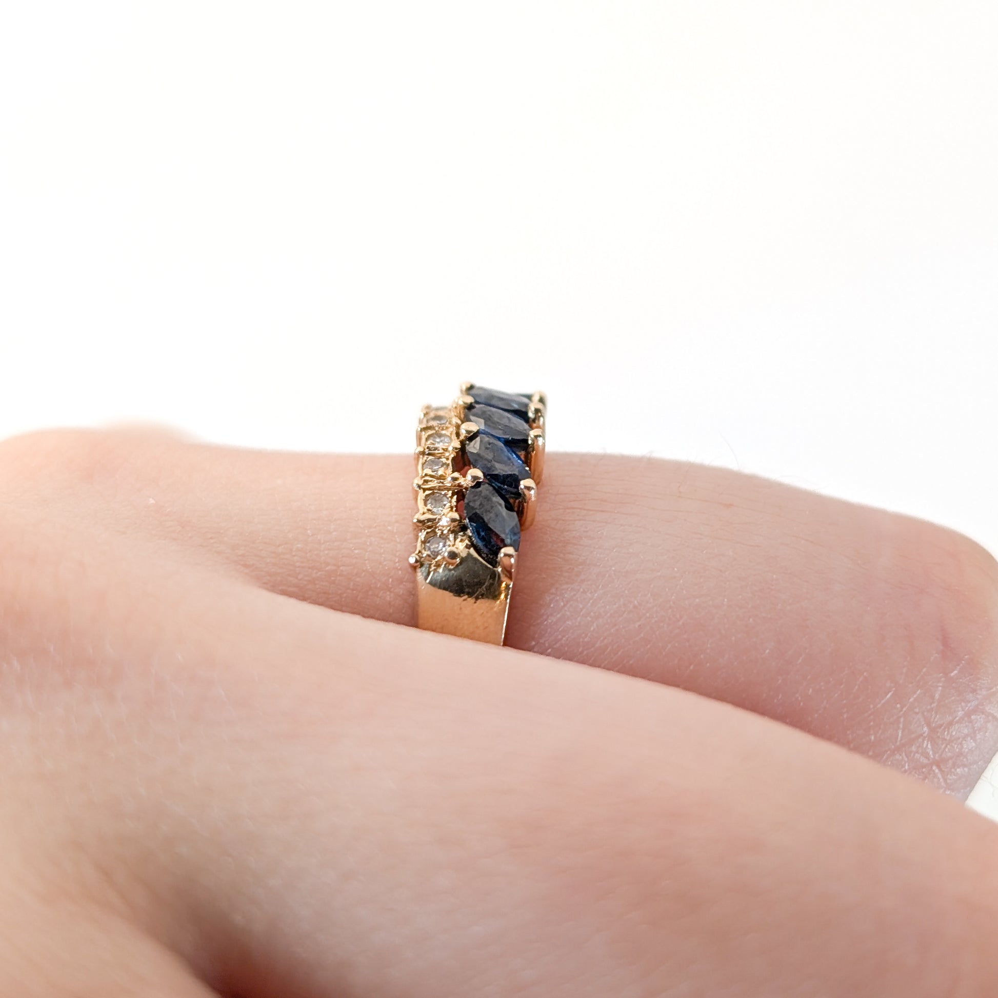 Vintage 14K Gold Marquise Blue Sapphires & Diamond Band Ring