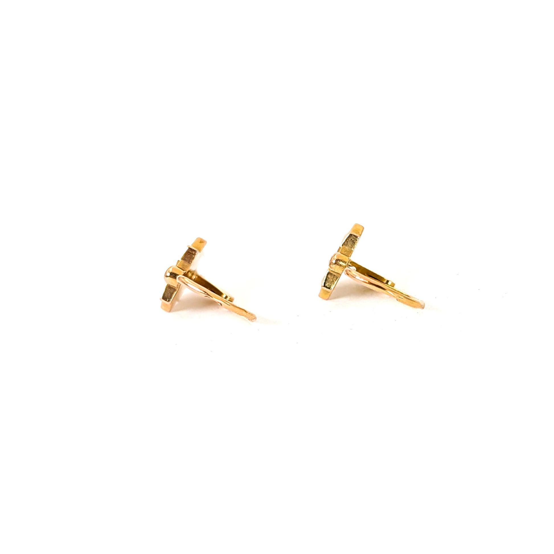 These vintage Soviet-era 14K gold earrings pair clean geometry with subtle sparkle. Each earring features a sculpted star-shaped drop with faceted sections that create a stylized starburst, giving the design a distinctly mid-century, modernist feel.